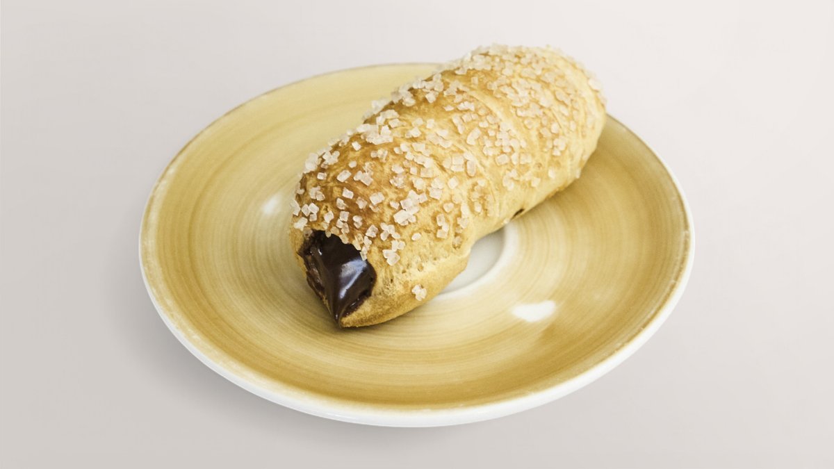 Handgefülltes Croissant mit dunkler Schokoladencreme