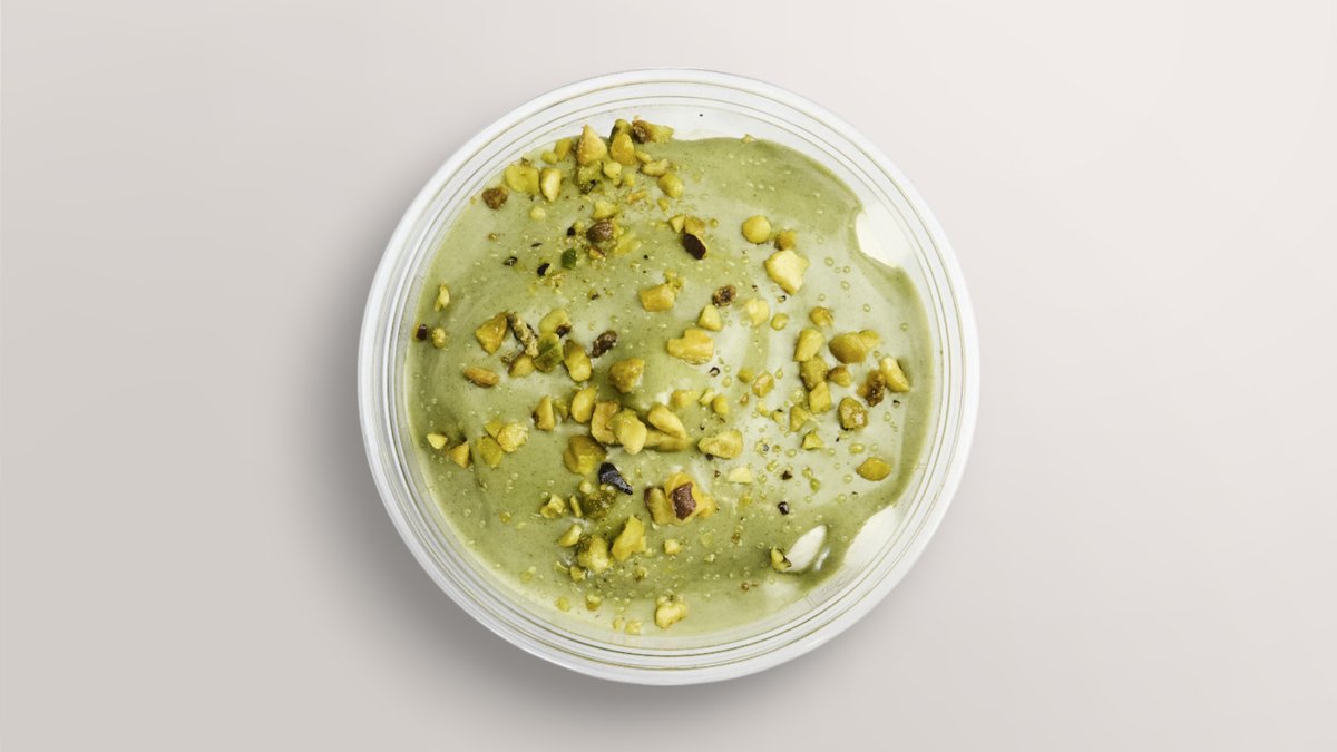 mit Pistaziencreme, Pistazienkrümeln und Puderzucker, serviert in einer Größe deiner Wahl