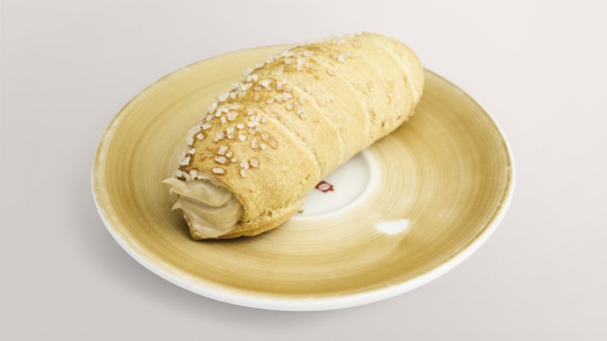 gebackene Blätterteigrolle, gefüllt mit Vanillecreme