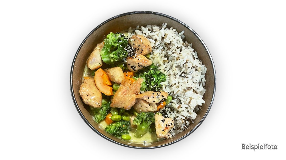 mit Hähnchenbrustfilet, frischem Brokkoli, frischen Zwiebeln und sahniger Currysoße