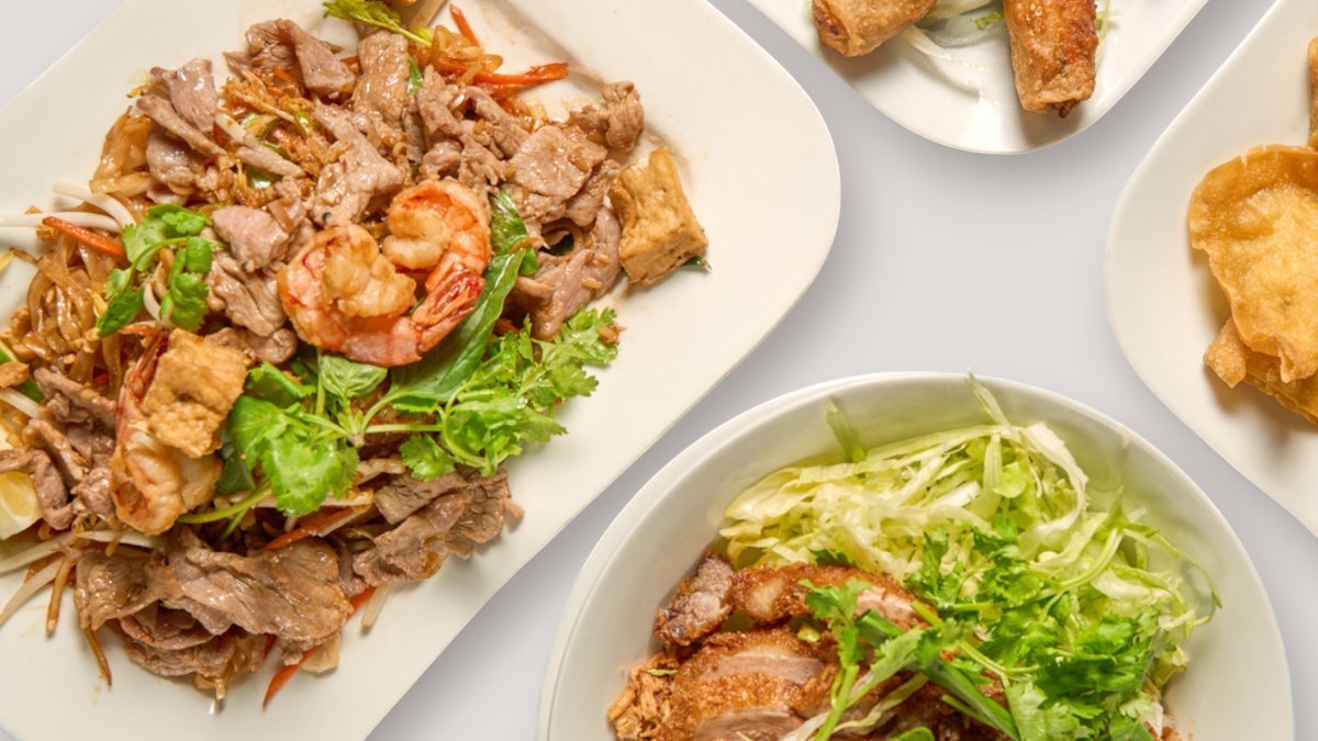 mit gebratenen Reisnudeln, Ei, Erdnüssen, Tamarindensoße und frischen Limetten