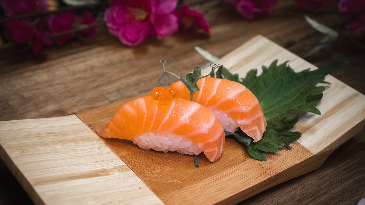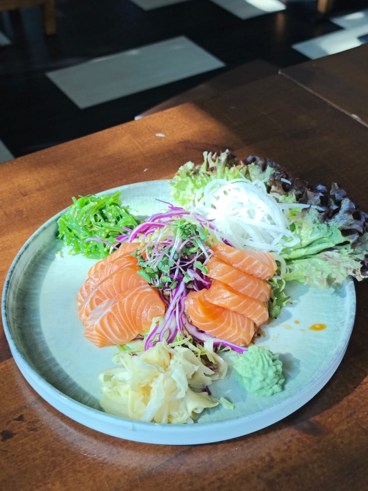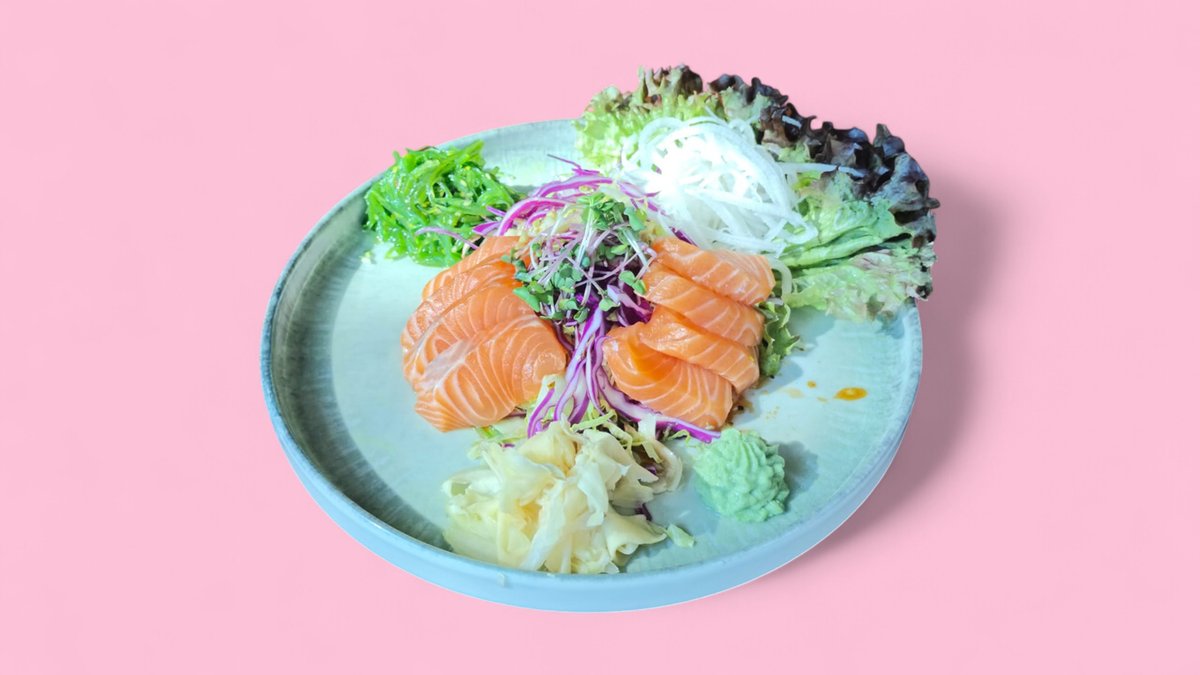 (Reisschale mit Lachs Sashimi) +1€ Flambé-Option