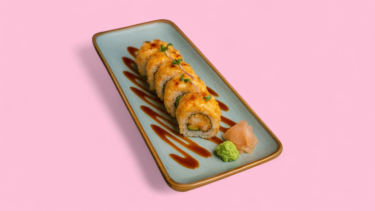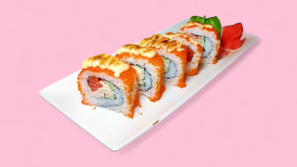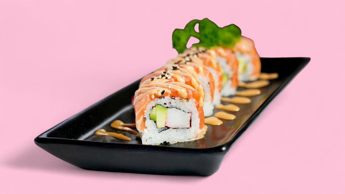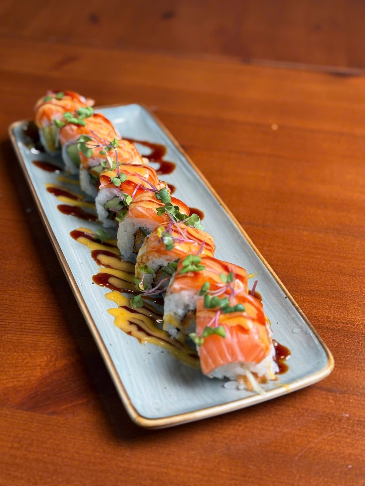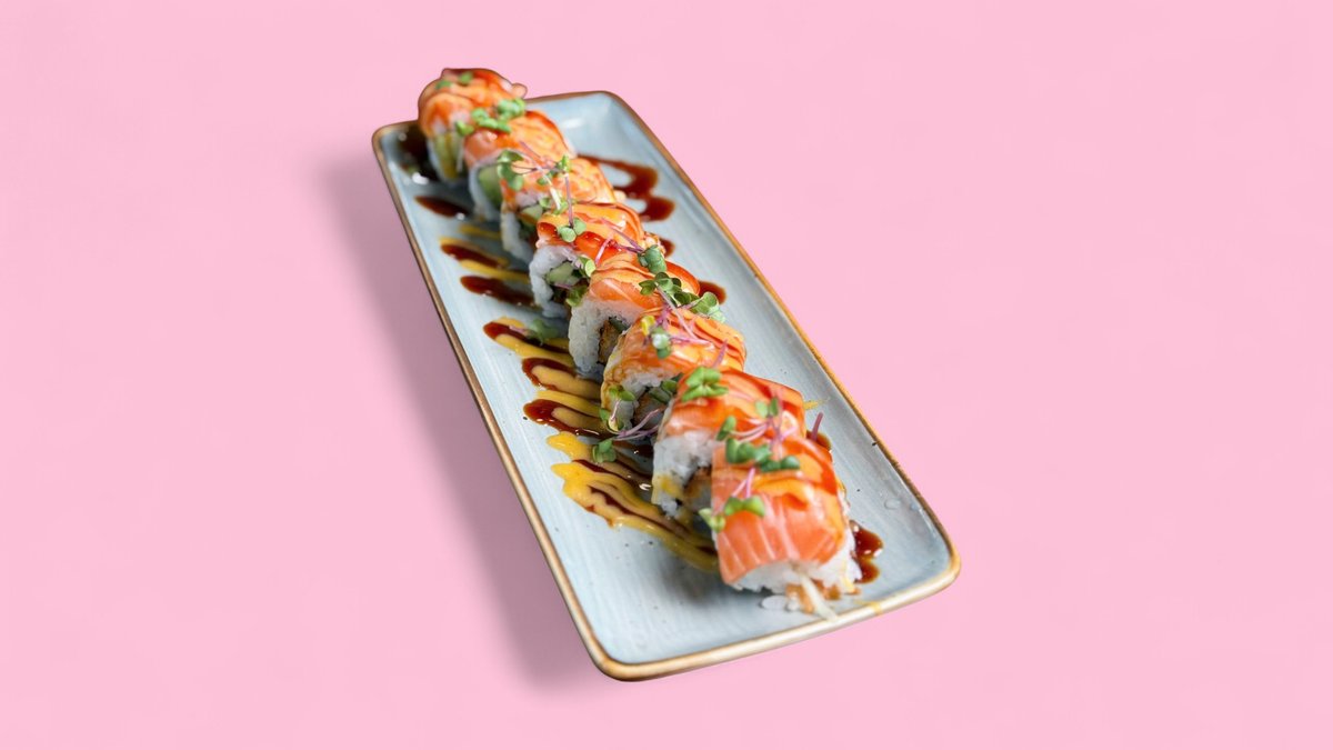 Garnele, Mango, Avocado, Frischkäse, mit Lachs umwickelt
