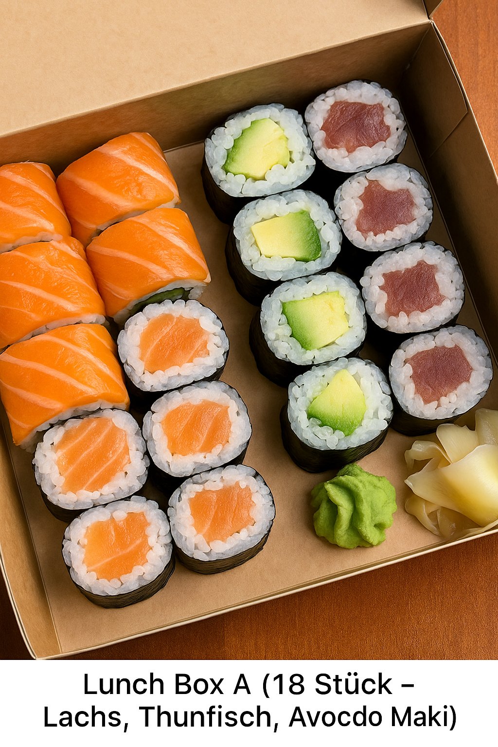 18 Stück – Lachs, Thunfisch, Avocado Maki