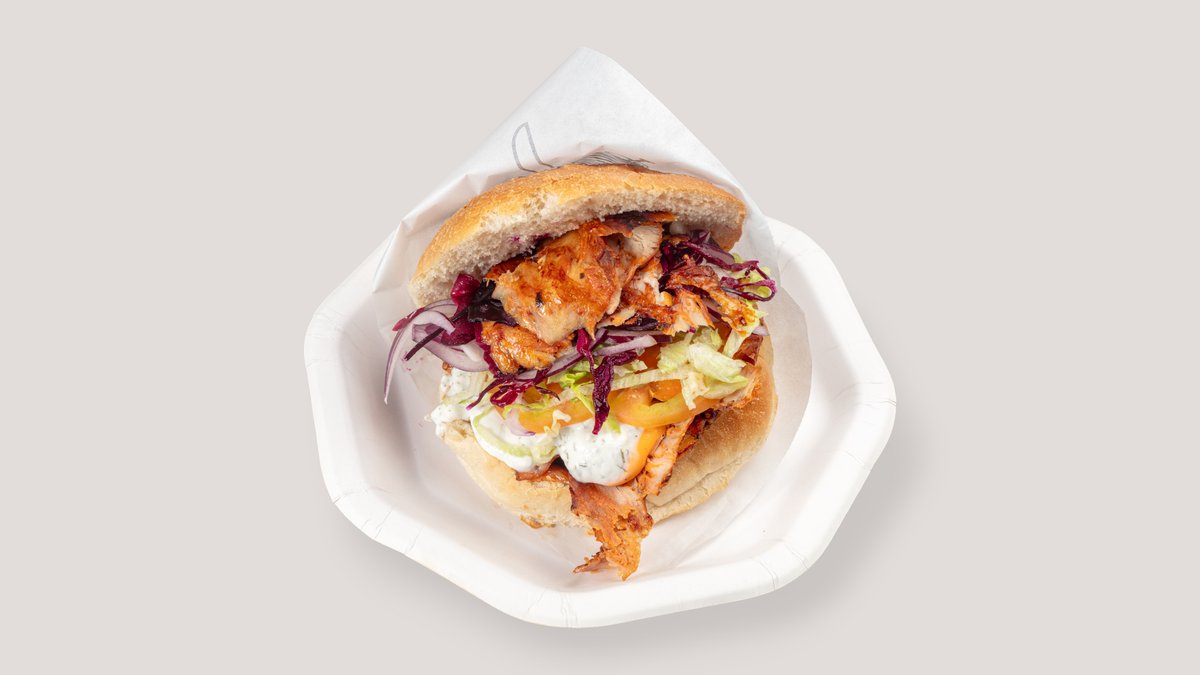mit Hähnchen-Dönerfleisch im Fladenbrot