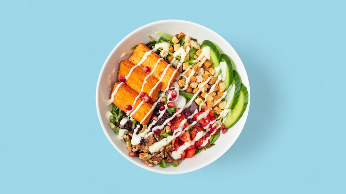 alle Bowls werden mit Granatapfel, Olivenöl und einem Dressing deiner Wahl zubereitet und Soßen deiner Wahl serviert („Build Your Own Bowl” wird ohne Granatapfel, Olivenöl und ein Dressing deiner Wahl zubereitet)