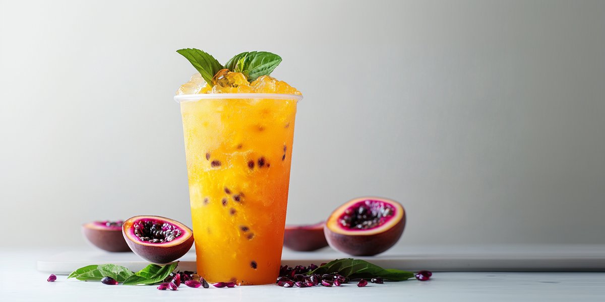 Erfrischend und köstlich zugleich - unser Passionsfrucht Bubble Tea mit schwarzen Tapiokaperlen, grünem Tee und einem Hauch von Ahornsirup. Ein wahrer Genuss in jedem Schluck!