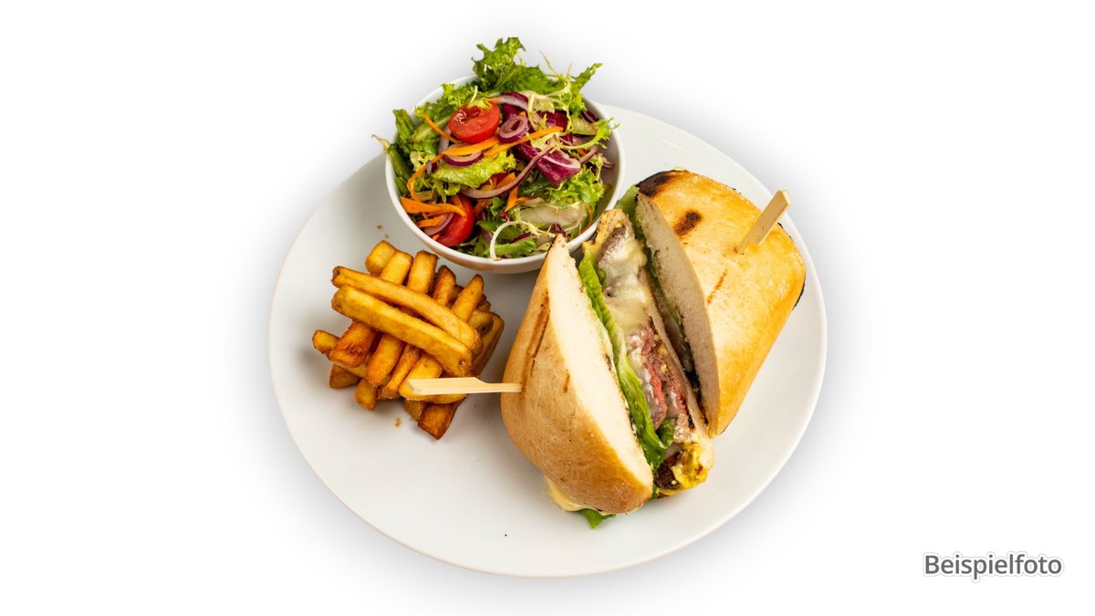 alle Sandwiches werden mit knackigem Salat und frischen Tomaten zubereitet und mit Pommes frites serviert