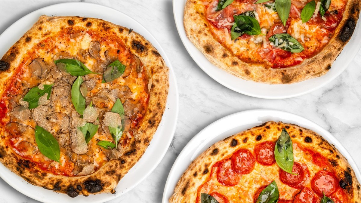 alle Pizzen werden mit San-Marzano-Tomaten, Basilikum und Fior di Latte Mozzarella zubereitet („Pizza Marinara“ und „Pizza Buffala“ werden ohne Fior di Latte Mozzarella zubereitet und „Pizza Tartufa“ wird ohne Basilikum zubereitet)