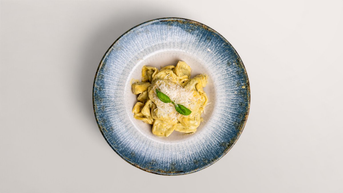 Tortellini mit Spinat-Ricotta-Füllung in Sahnesoße und Parmigiano Reggiano
