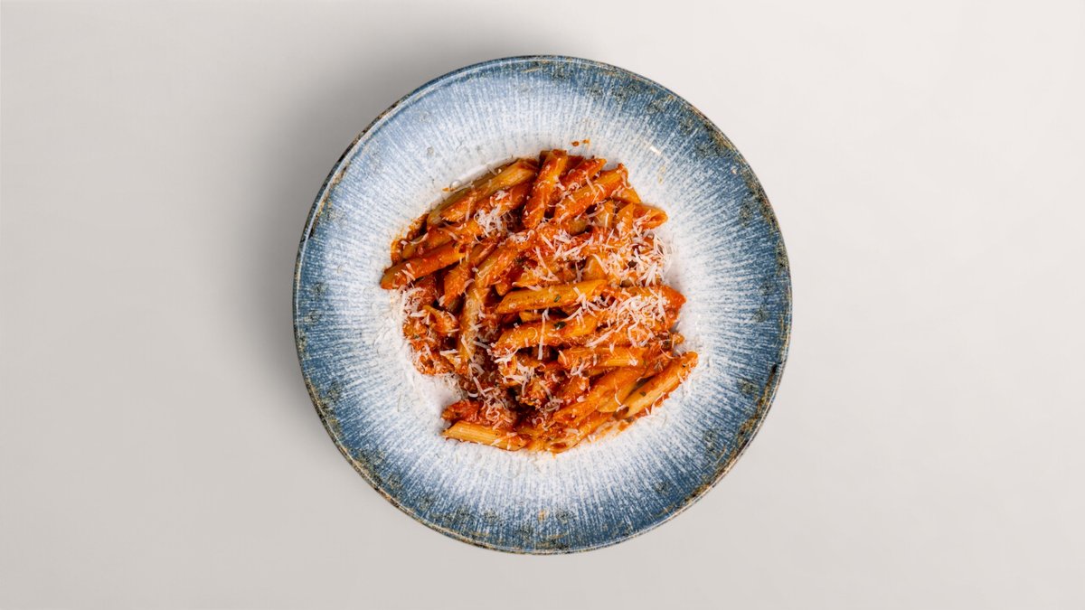Penne mit Tomatensoße, Knoblauch, Chili, Olivenöl und Petersilie