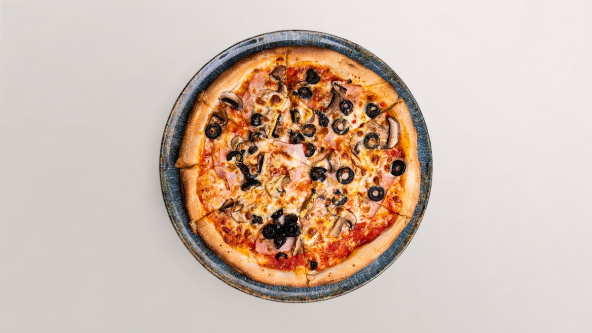 mit Artischocken, Salami, Schinken, Oliven, Champignons und Peperoni