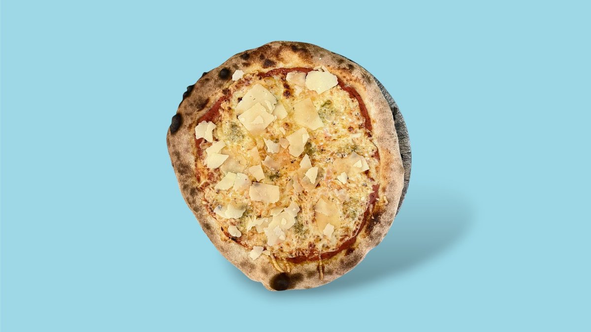mit Edamer, Mozzarella, Gorgonzola und Parmesan