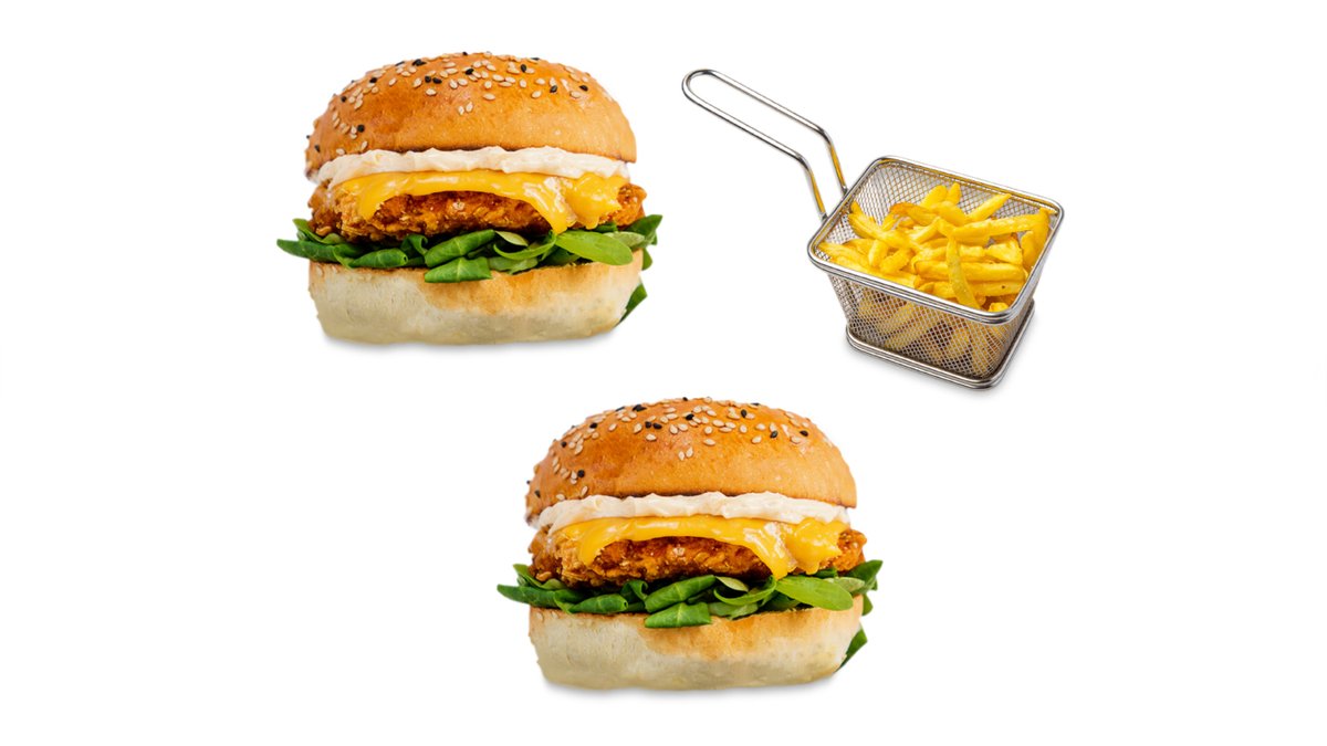 alle Menüs werden mit Pommes frites, einem Getränk und einem Burger deiner Wahl serviert