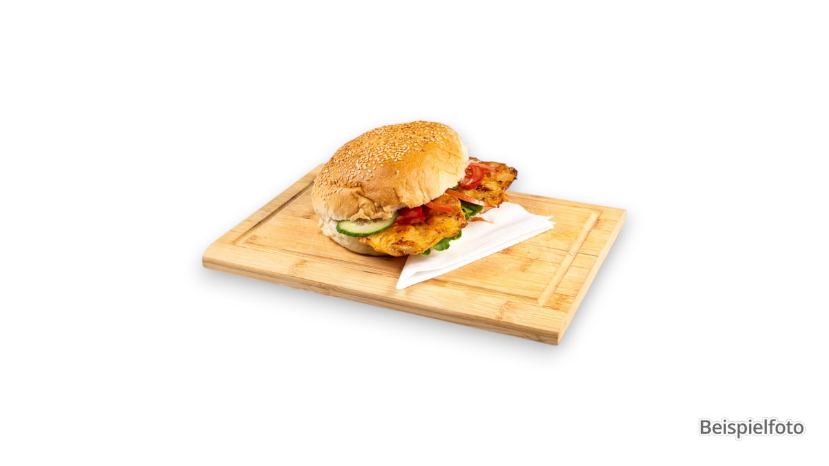 mit Hähnchenfleisch vom Drehspieß, frischen Tomaten und roten Zwiebeln