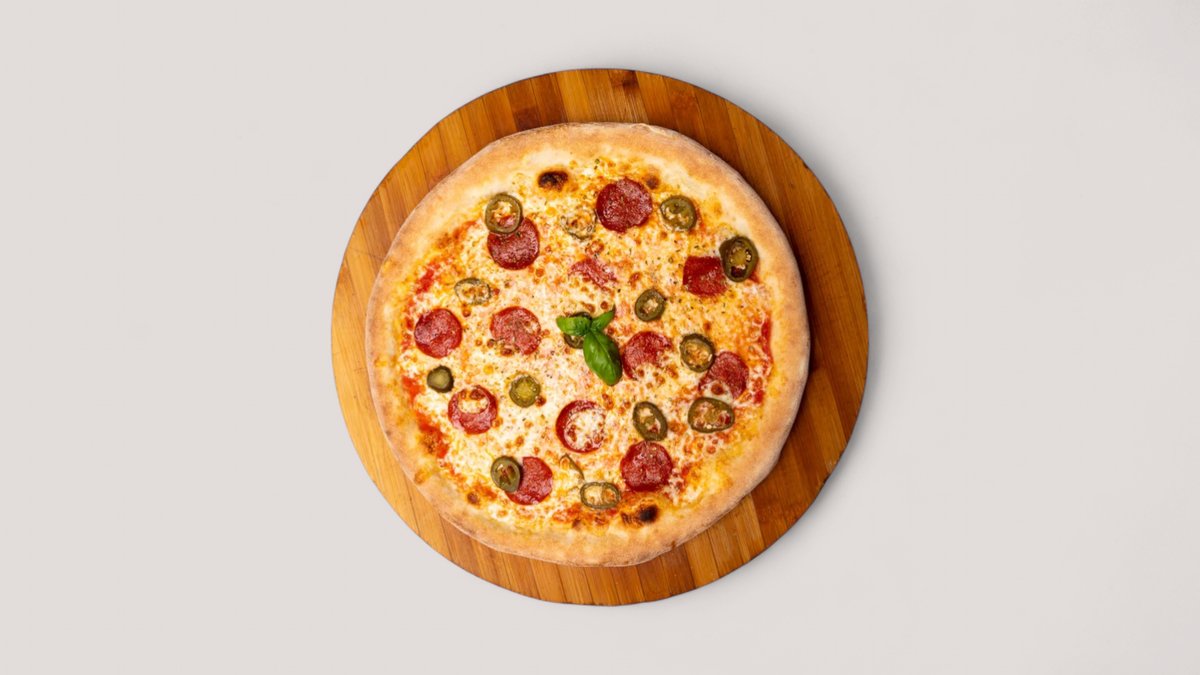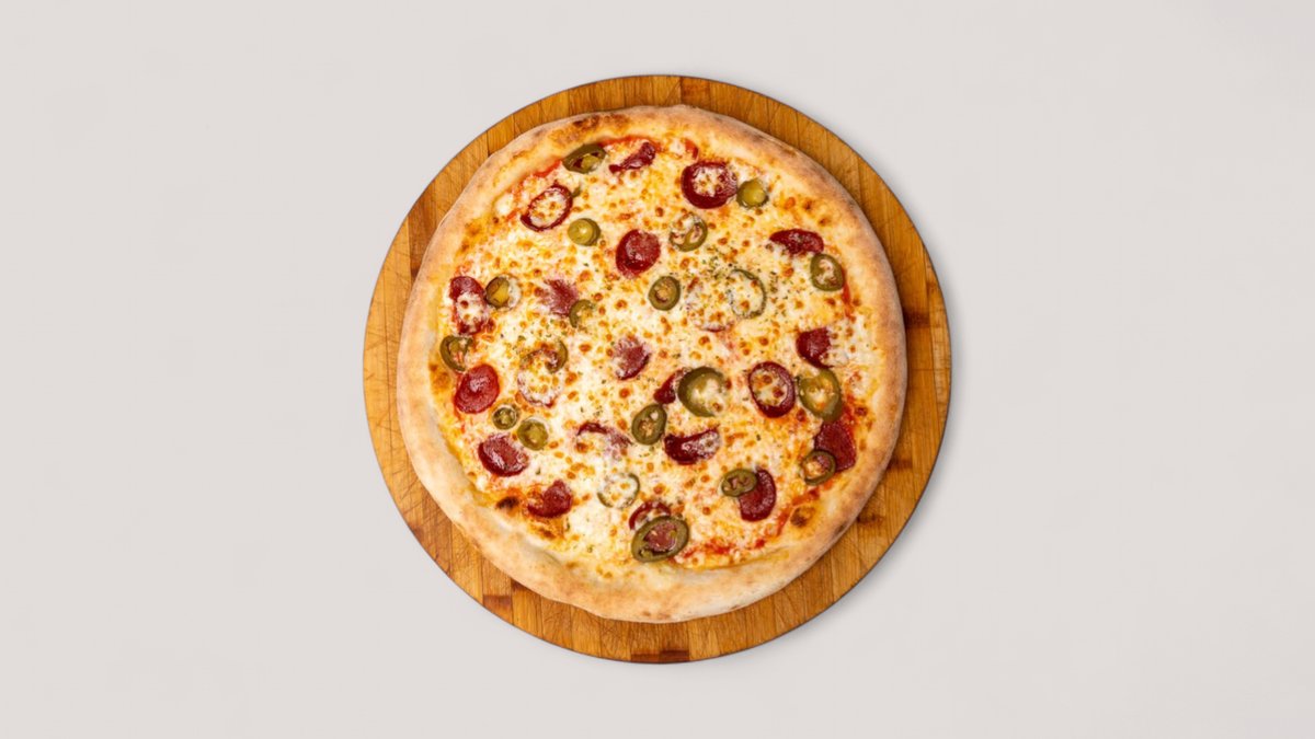 mit Rindersalami, Truthahnschinken, Rinderhack, Rinderpeperoni-Salami, Sucuk vom Rind und Basilikum