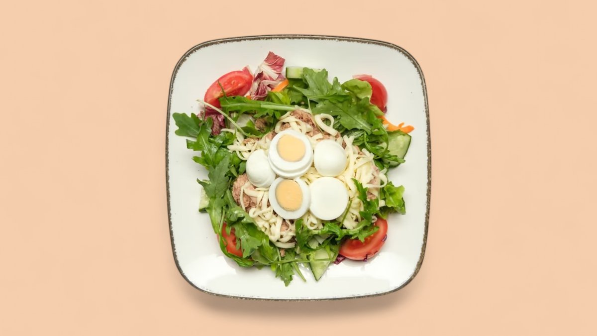 bunter Salatteller mit Thunfisch, Ei und Mozzarellawürfel