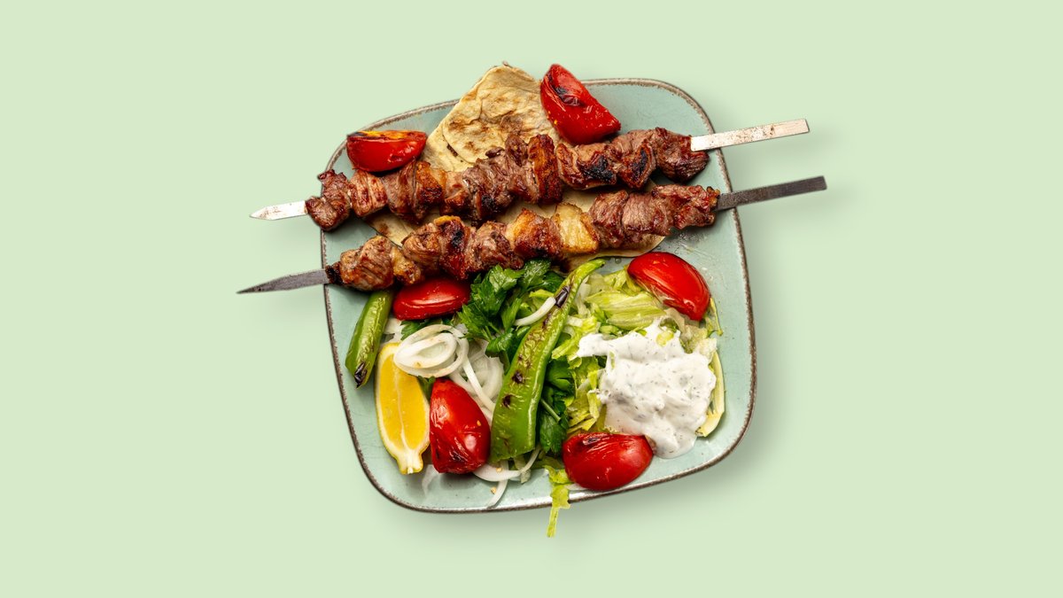 2x gegrillte Lammfleischspieße mit Salat