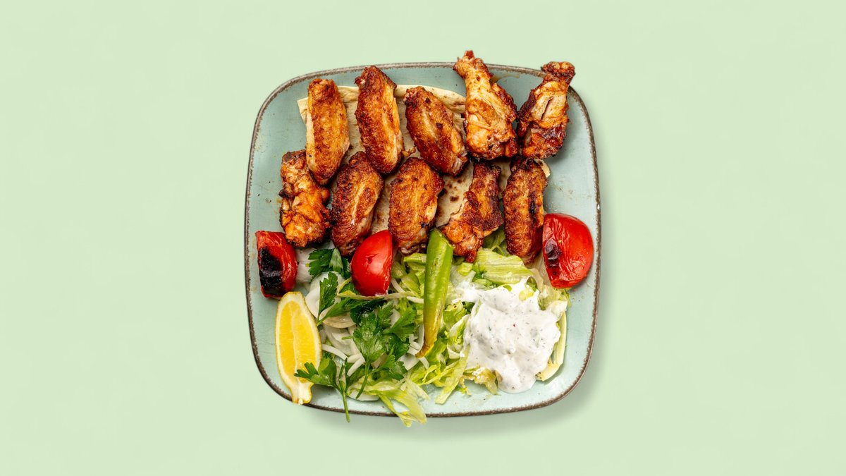 2x gegrillte Hähnchenflügel mit Salat
