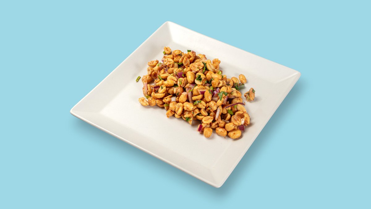 knusprige geröstete Erdnüsse mit Ingwer, Knoblauch, Zwiebeln, Tomaten und Koriander in Senföl