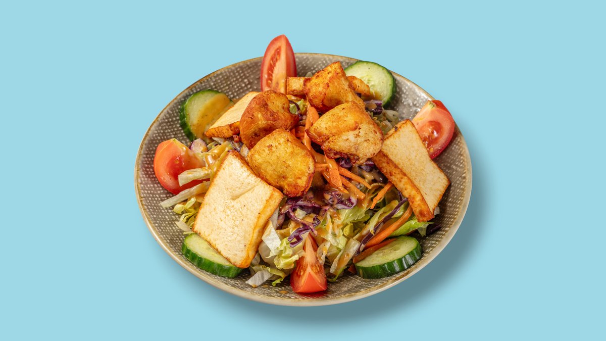 frischer gemischter Salat mit saftigem Hähnchen und einem hausgemachten Dressing