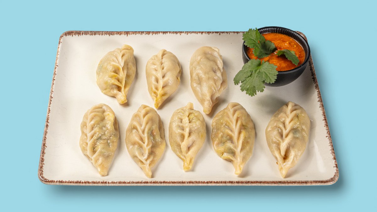 10 Stück zarte, saftige nepalesische Dumplings mit einer Füllung deiner Wahl, sorgfältig gedämpft und serviert mit einer würzigen Tomaten-Chutney