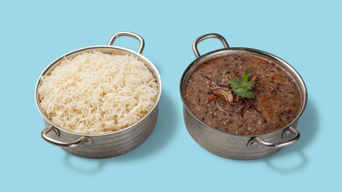 schwarze Linsen, gekocht mit Knoblauch und nepalesischen Schnittlauchblättern