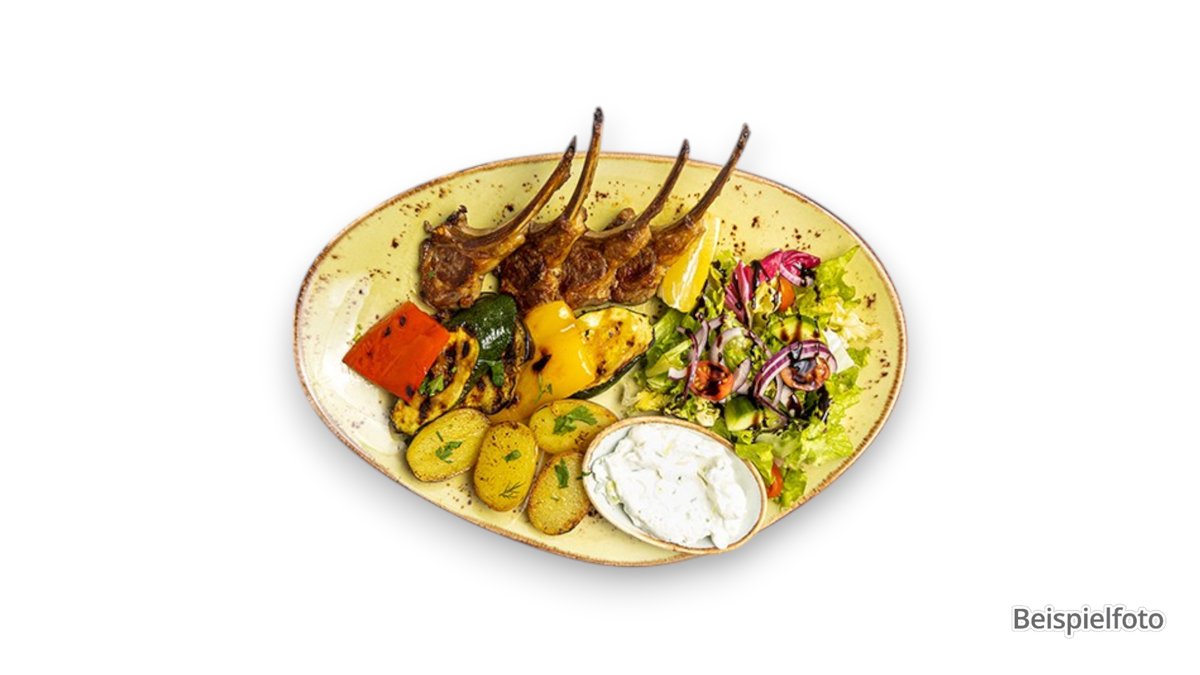 Lammkoteletts aus der Krone von Grill mit Tsatsiki, dazu Babykartoffeln mit Rosmarin