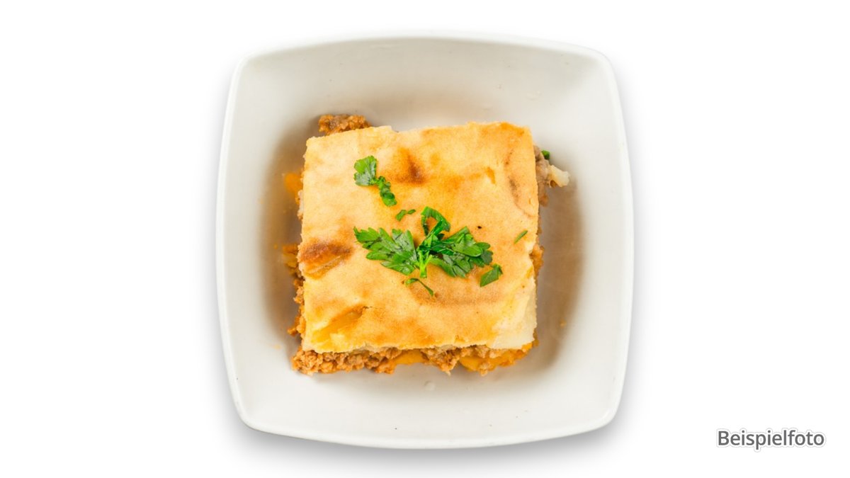 Auflauf mit Auberginen, Kartoffeln, Hackfleisch vom Schwein und Rind, Béchamelcreme