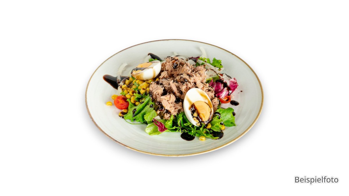 Salat mit Thunfisch, Ei und Zwiebeln