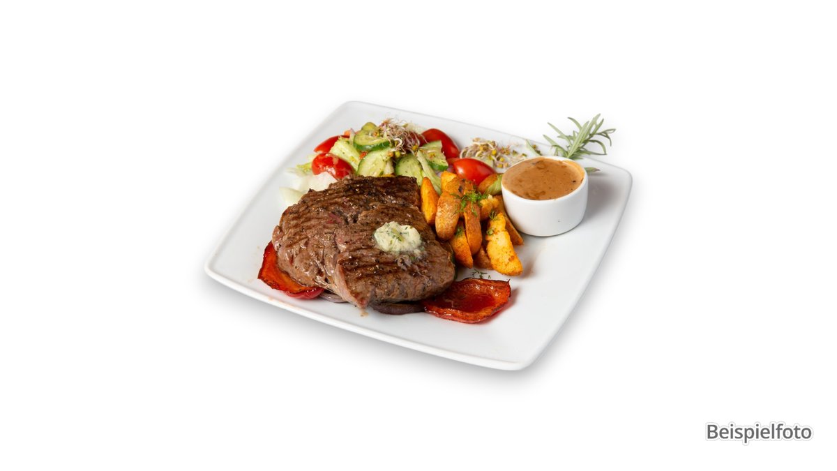 Rinderlende vom Grill mit Pommes frites