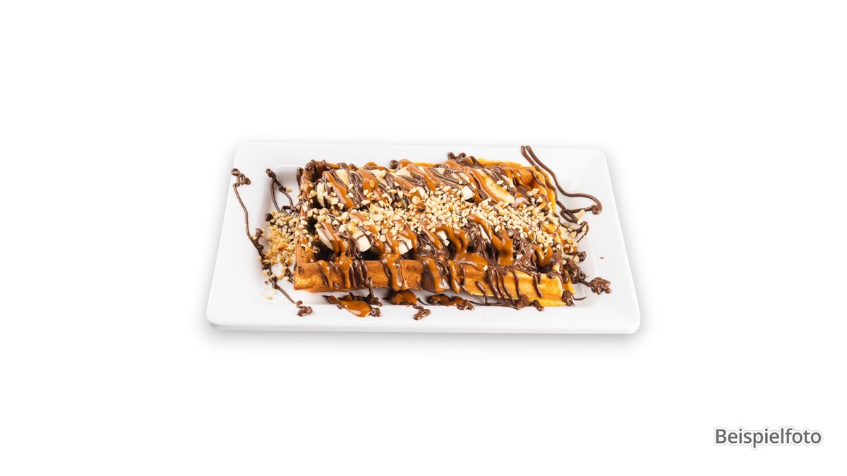 vegetarisch Schokoladen-Brownie mit Karamell und NĂĽssen Das Gericht wurde mit Schokolade zubereitet und kann Spuren von (verschiedenen) NĂĽssen enthalten.
