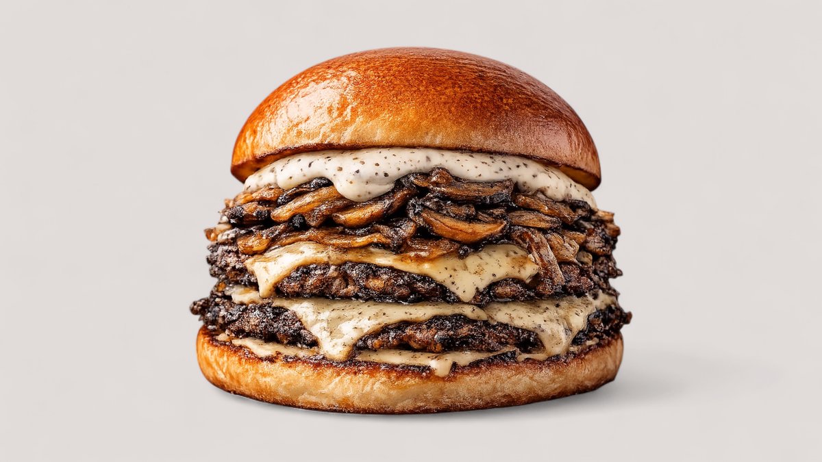alle Burger werden mit doppeltem Rindfleischpatty, doppeltem Käse, hausgemachten Gurken, sautierten Zwiebeln und einer Soße deiner Wahl zubereitet