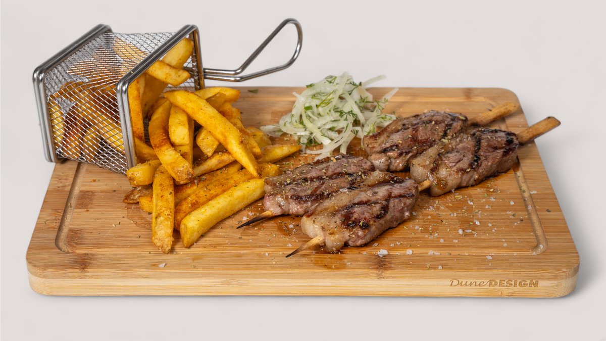 für 1 Person 1x Rinder-Spieß, 1x Köfte-Spieß, 1x Hähnchenspieß und 1x Hähnchenbrust
