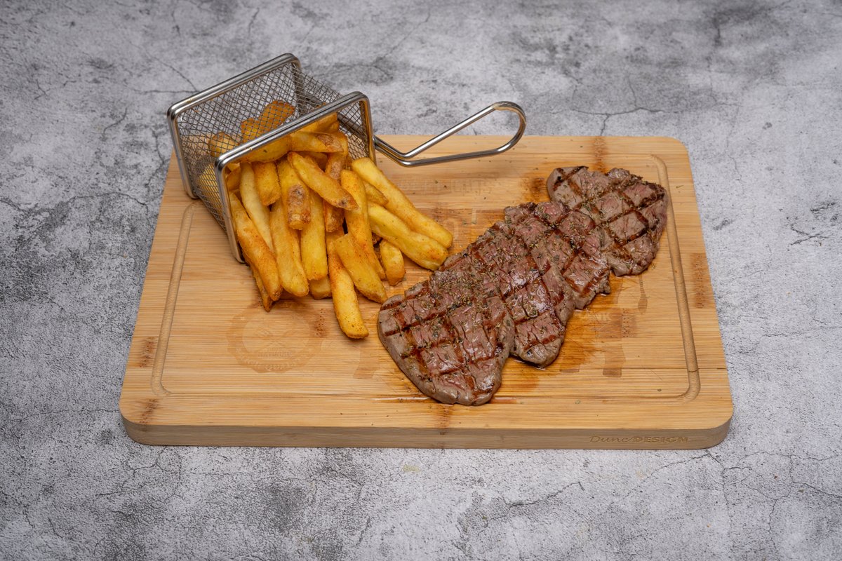 alle Gerichte werden mit Pommes frites und Grillgemüse serviert