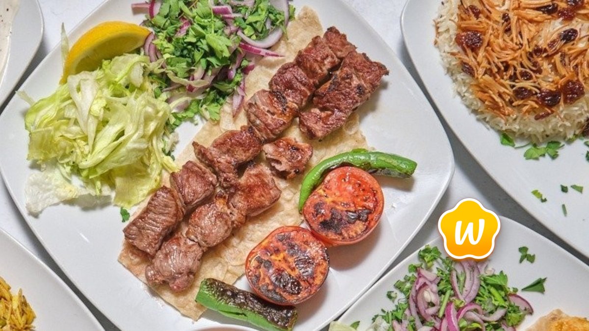 alle Gerichte werden mit Tomaten, grünem Salat, Zwiebeln in frischgebackenem Fladenbrot eingerollt