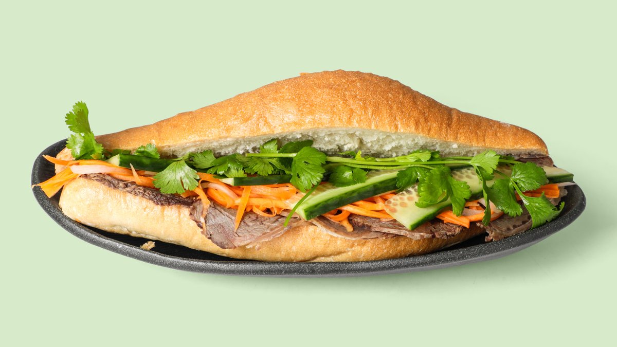 alle Gerichte werden mit Gurken, eingelegten Karotten, eingelegtem Rettich und Koriander zubereitet und mit Baguette serviert („504. Banh Mi Bo Kho“ wird ohne Gurken, eingelegte Karotten, eingelegten Rettich und Koriander zubereitet)