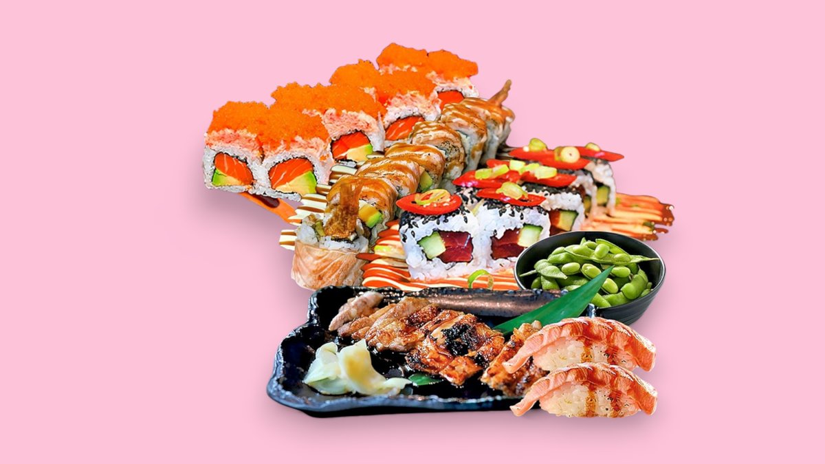 perfekt für 2-4 Personen 1x Chicken Teriyaki 8x Kari Kari Fancy 8x Tomo Fancy Roll 8x Spicy Tuna Roll 2x Flame Shake Nigiri 1x Edamame