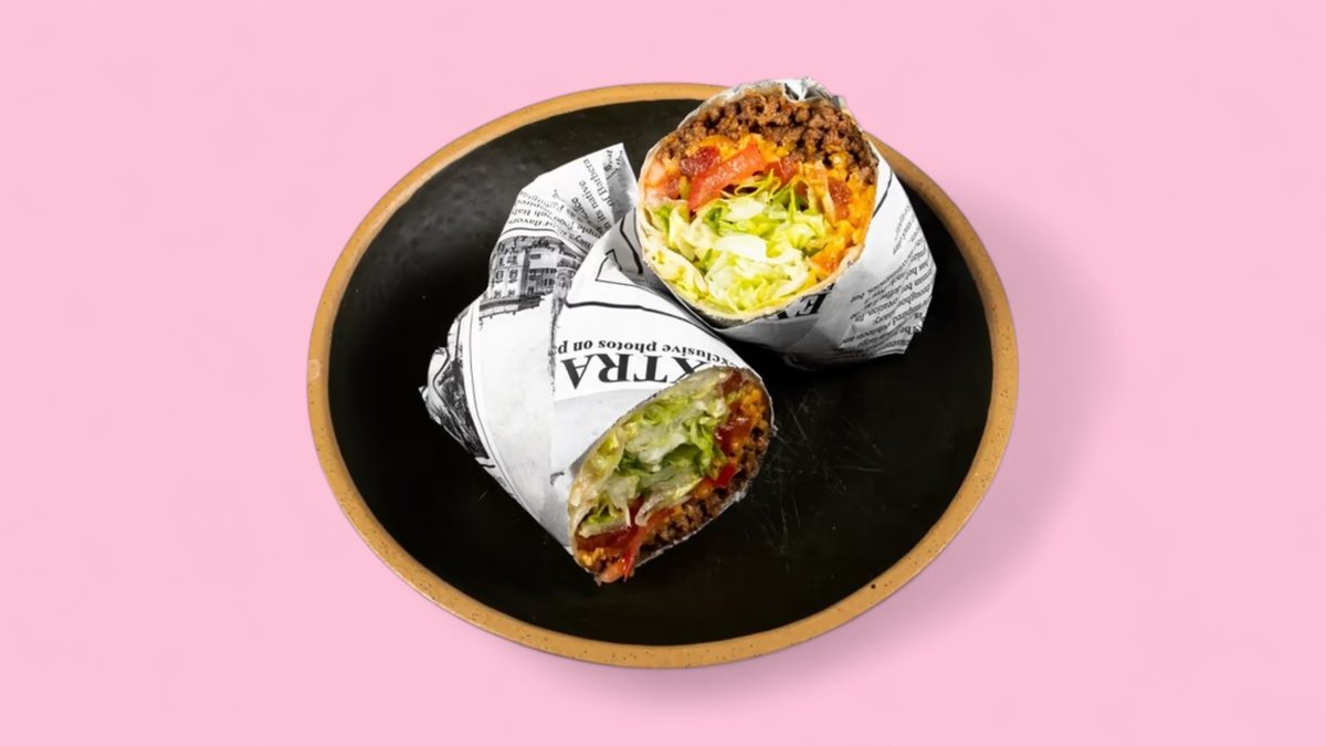 mit Beyond Meat, Eisbergsalat, Tomaten, Sour Cream und Cheddar