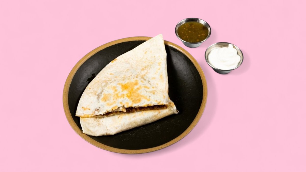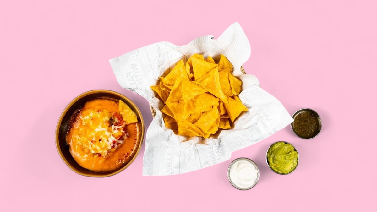 mit Beyond Meat, Tomaten, Mozzarella, Cheddar und Chili-Dressing, geliefert mit Nachos und Guacamole