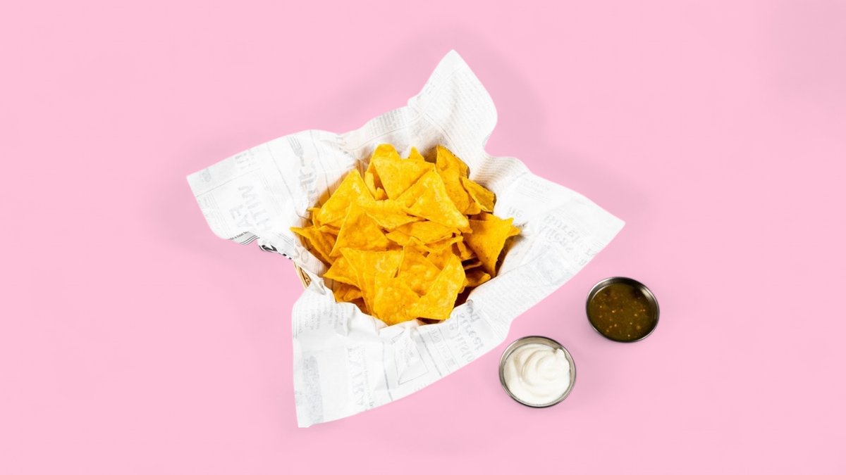 mit Beyond Meat, Eisbergsalat, Tomaten, Mango Chili Sauce and Crushed Nachos