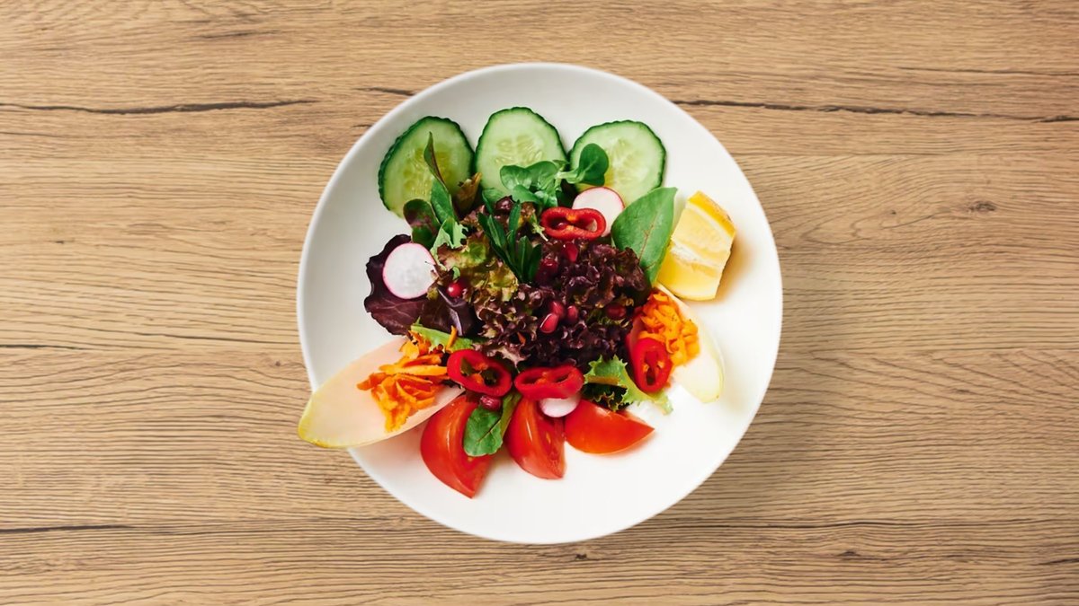 bunter Salatteller mit Tomaten und Gurken