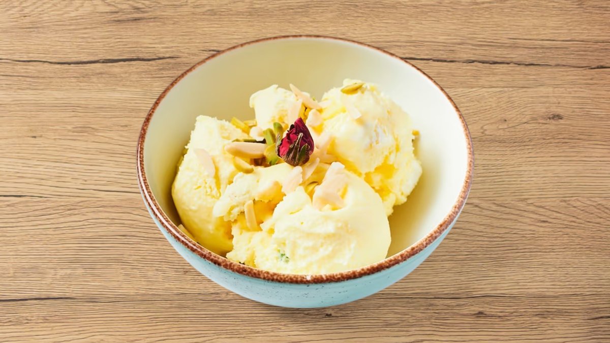persisches Safran-Eis mit kleinen gefrorenen Sahnestückchen