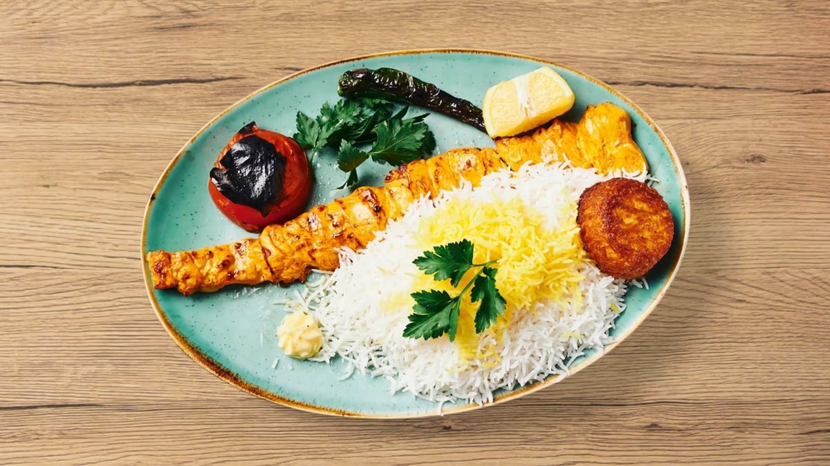 gemischte Grillplatte für 2 Personen mit 1 Spieß Barg, 1 Djudje und 2 Spießen Kubideh