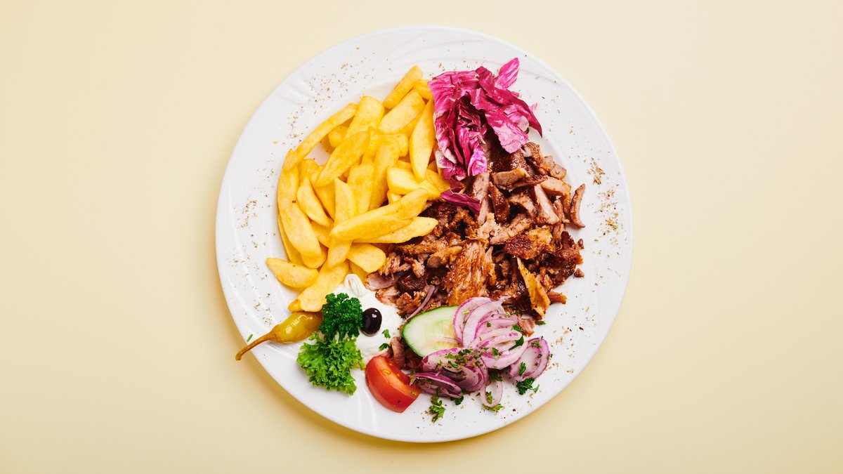 Gyros, Souvlaki mit beilage nach wahl