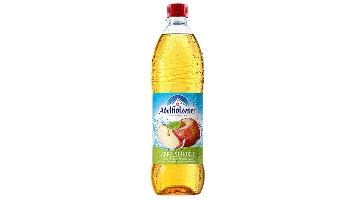 Apfelsaftschorle, Mischung aus Apfelsaft und natürlichem Mineralwasser, ohne Zuckerzusatz, mit Kohlensäure