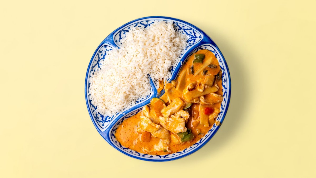8x thailändische Frühlingsrollen 1x Hähnchenfleisch Thai-Curry