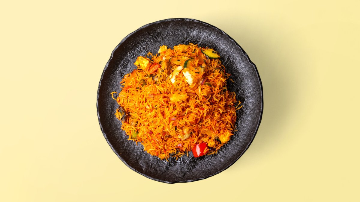 alle Gerichte werden mit Reis und Schärfegrad deiner Wahl zubereitet („Paneer Vindaloo“ und „Gebratenes Hähnchenfleisch“ werden ohne Reis zubereitet)