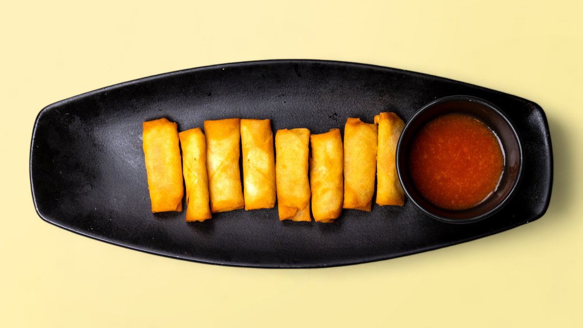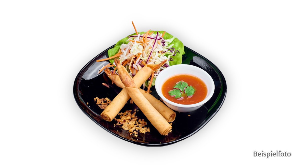 8x thailändische Frühlingsrollen 1x gebratene Nudeln mit Hähnchenfleisch und Gemüse
