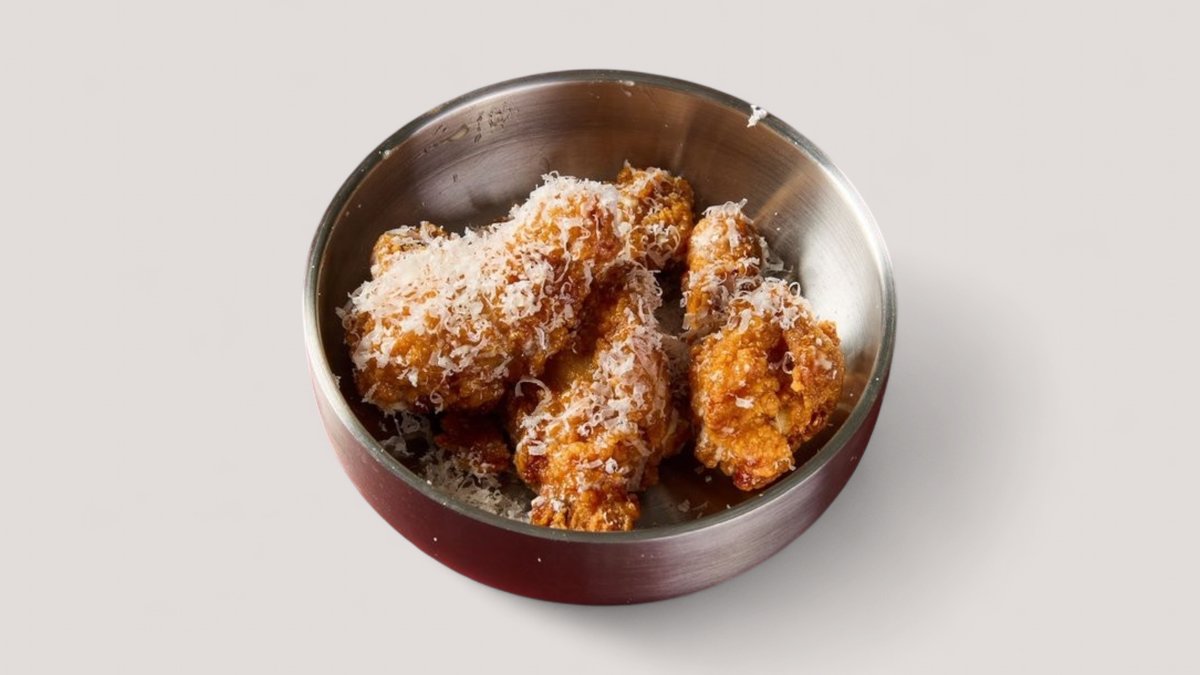 mit Hähnchenstreifen, Secret Soße, Cheddar, Jalapeños, und karamellisierten Zwiebeln in Brioche-Toast